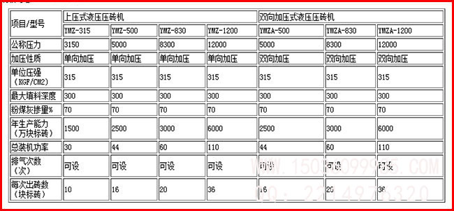 四柱壓磚機技術(shù)參數(shù)